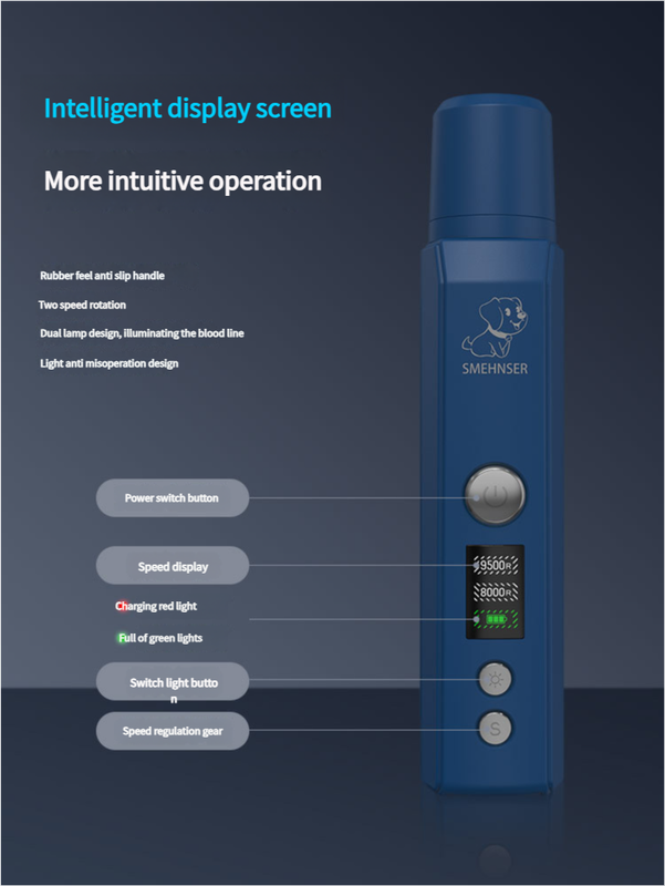 - 6 Adjustable Speeds: Customize the grinding speed (up to 12000 RPM) to suit your pet's nail thickness and comfort level.